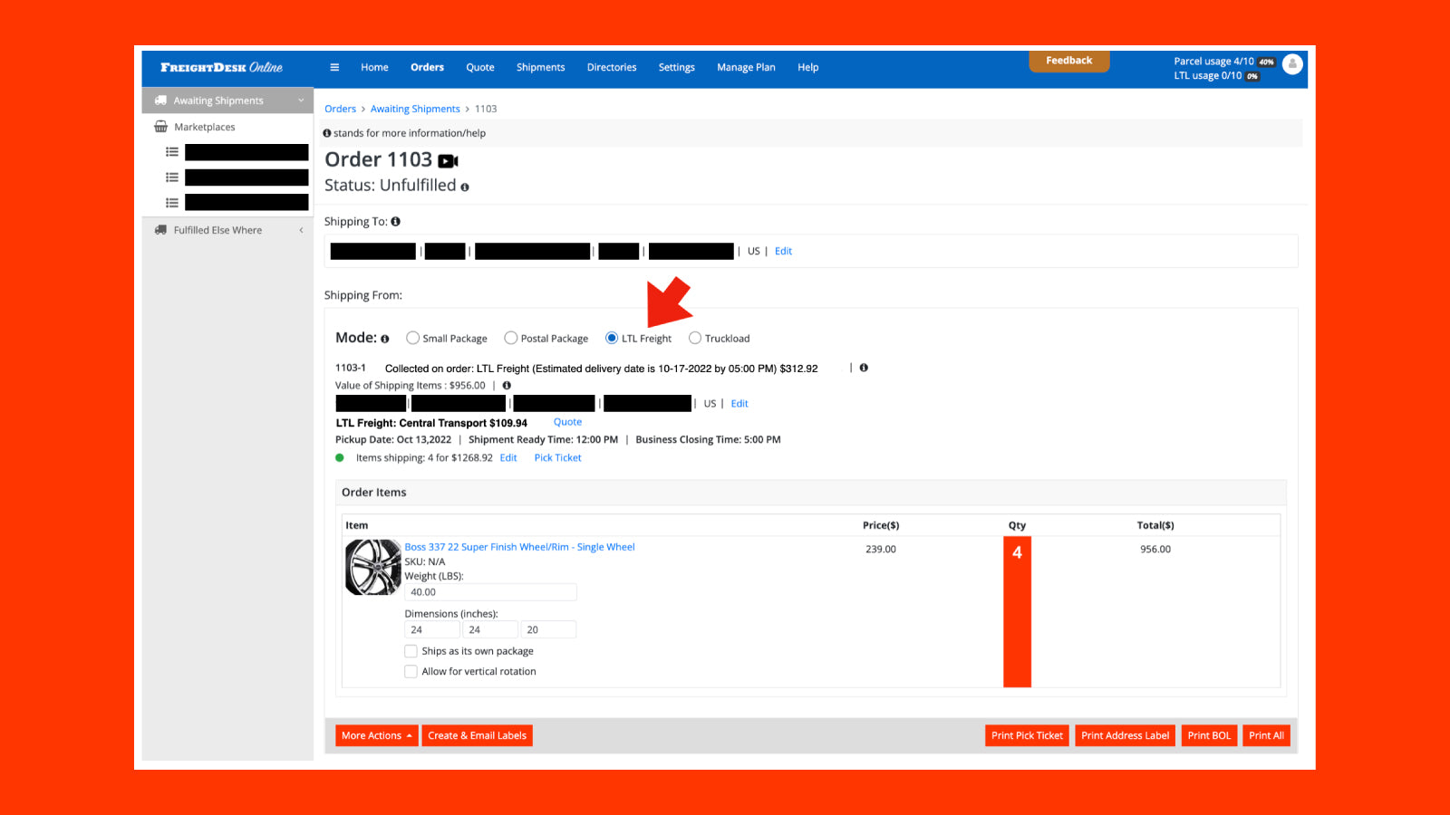 Automatically import orders to FreightDesk Online and ship them with your connected truckload, LTL freight, parcel, and postal shipping providers with little to no data input. Compare your negotiated rates and the discounted rates available from FreightDesk Online to select the best choice for each order. Shipment tracking and order status are written back to Shopify to keep customers updated, the store personnel informed, and the process automated.