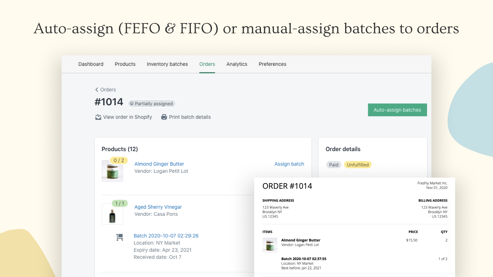 Freshly is a winner of FDA's Smarter Food Safety Traceability Challenge and a winner of Shopify's App Challenge. Freshly is designed for retailers, suppliers, and other players in the distribution chain selling CPGs, perishables, or regulated products such as food & beverages, cosmetics, cannabis, and pharmaceuticals. Track products by batch or lot to more effectively manage expiration dates, inventory levels, reduce product spoilage, manage product recalls, and limit available daily stock.