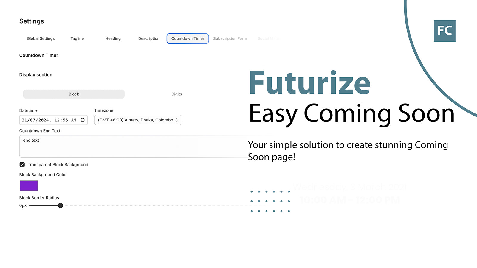 Futurize - Easy Coming Soon, allows you to create stunning coming soon pages with ease. Choose from a variety of ready-made templates and customize taglines, headings, descriptions, countdown timers, subscription forms, and social media icons. Enjoy extensive customization options to make your page unique and engaging, all with just a few clicks. You can choose from a wide range of fonts in the Google font. Besides font selection, you also have the ability to customize various text properties.