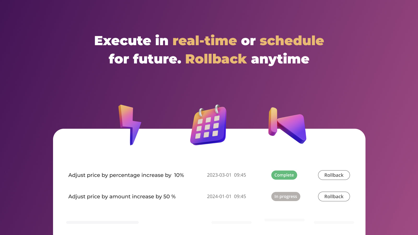 Manually change the prices of your products takes time, and no one has time for this kind of task. With FuzRepricer, it will only take you a few seconds to mass replace the prices of your products. All this with just a few mouse clicks. Create promotions on collections, plan sales in advance, you have a lot of possibilities with FuzRepricer.