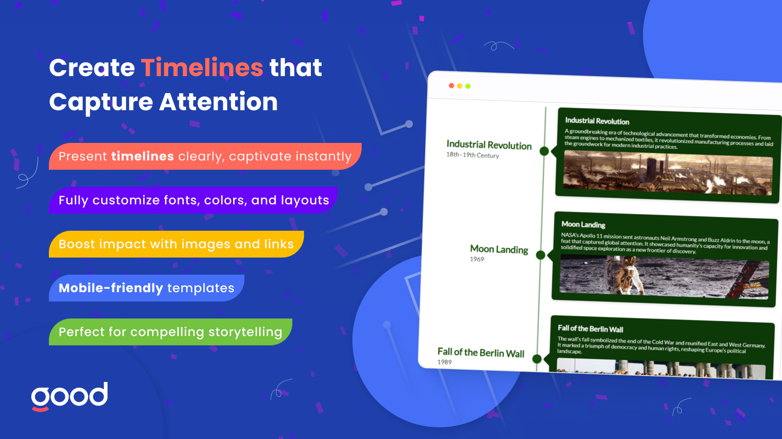 Add interactive, customizable timelines to make your website more memorable.