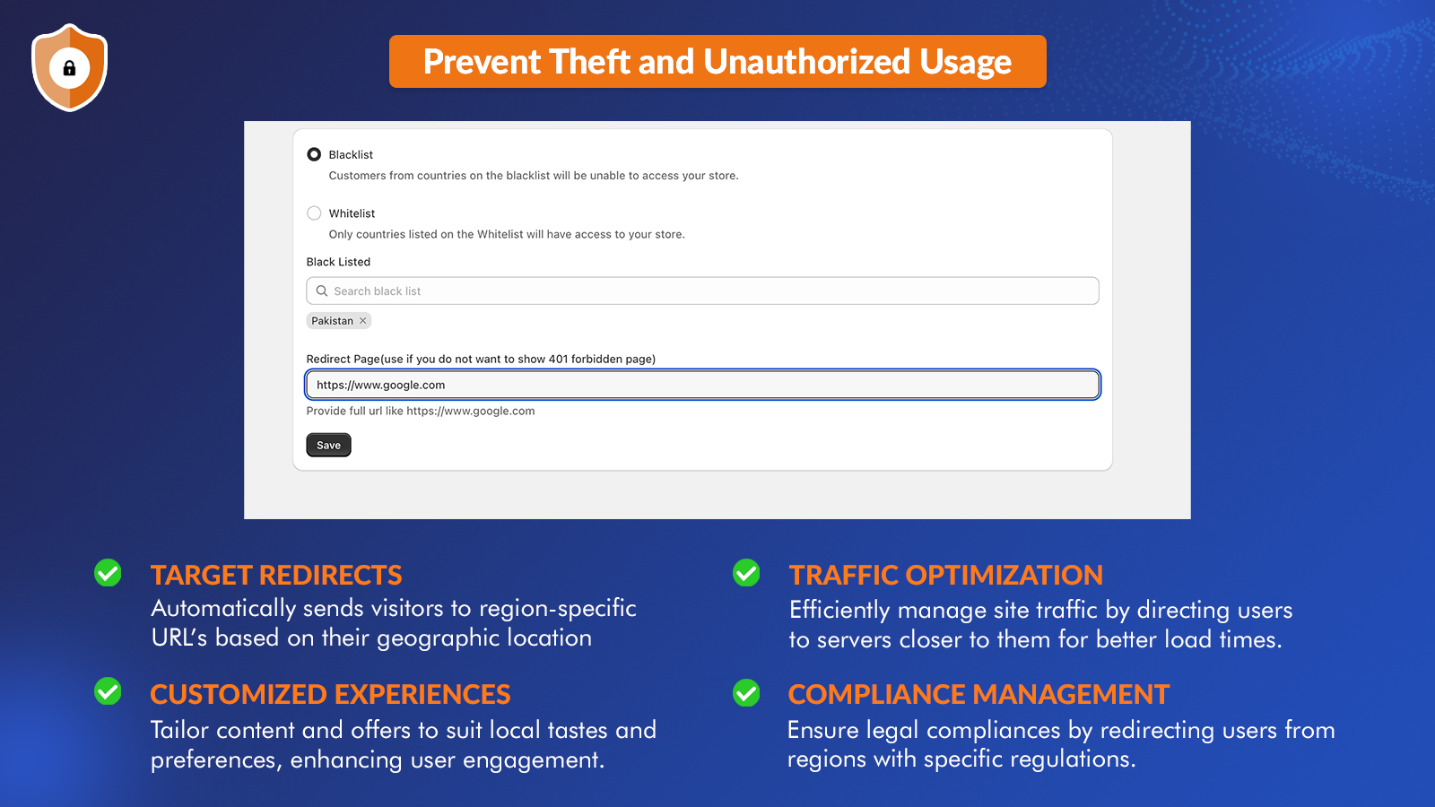 Secure your store with Geo Deny! Block countries, IPs, and bots using proxies/VPNs. Enhance