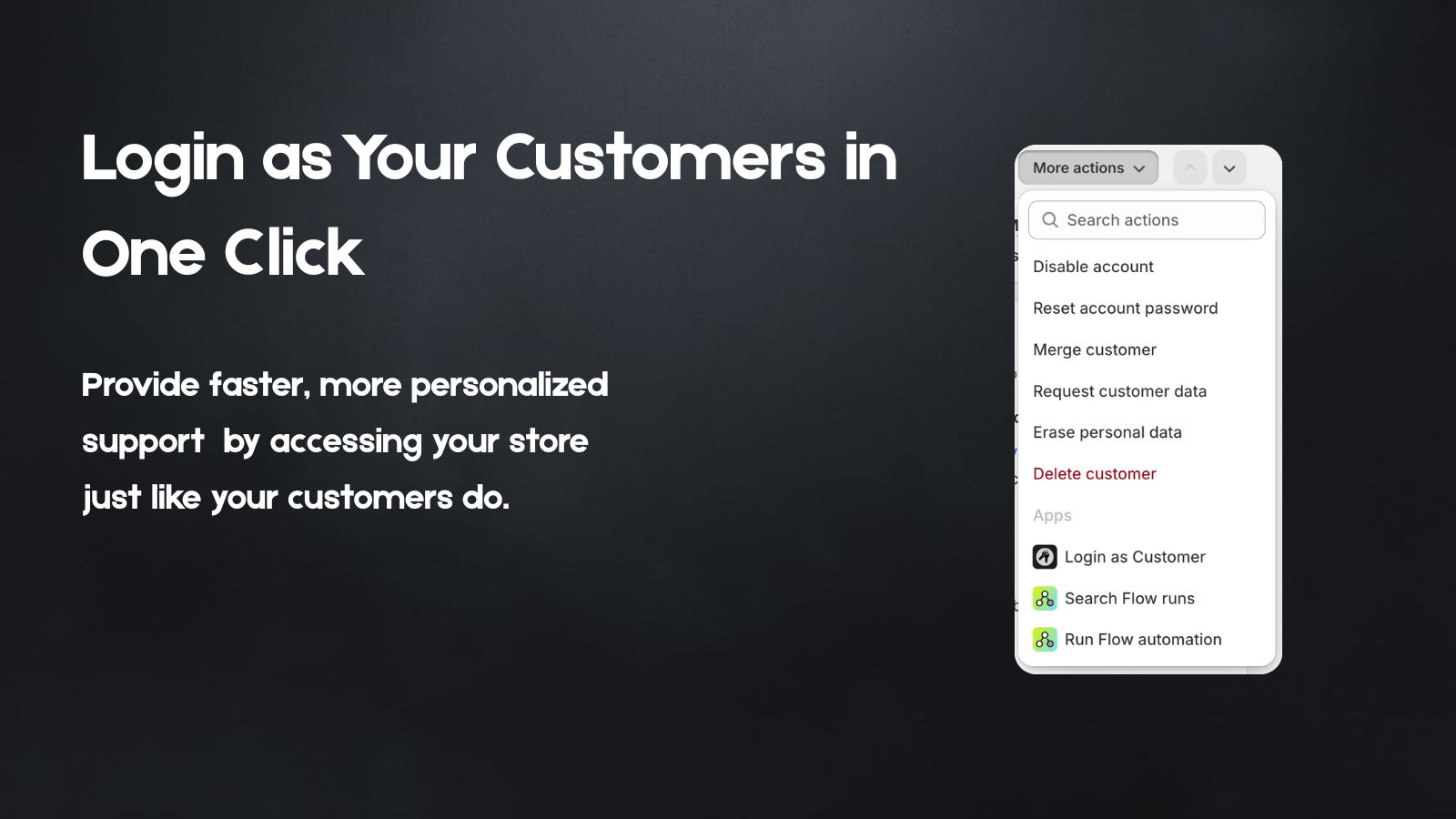 Log in as customers to troubleshoot issues, test experiences, and provide better support.