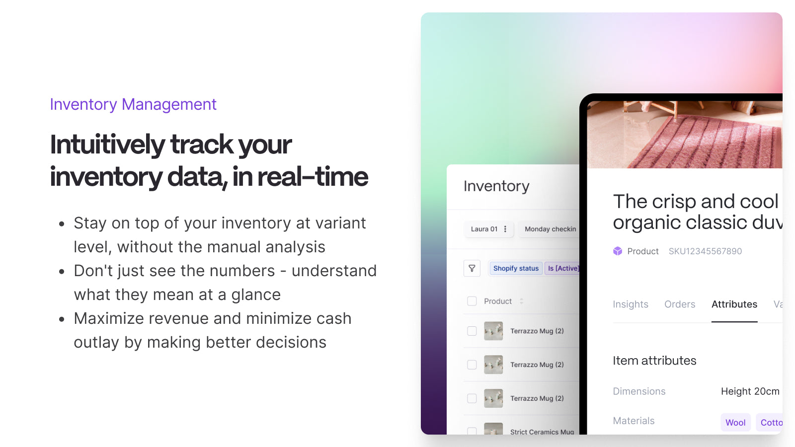 Seamlessly manage inventory tracking, planning, and ordering in one platform