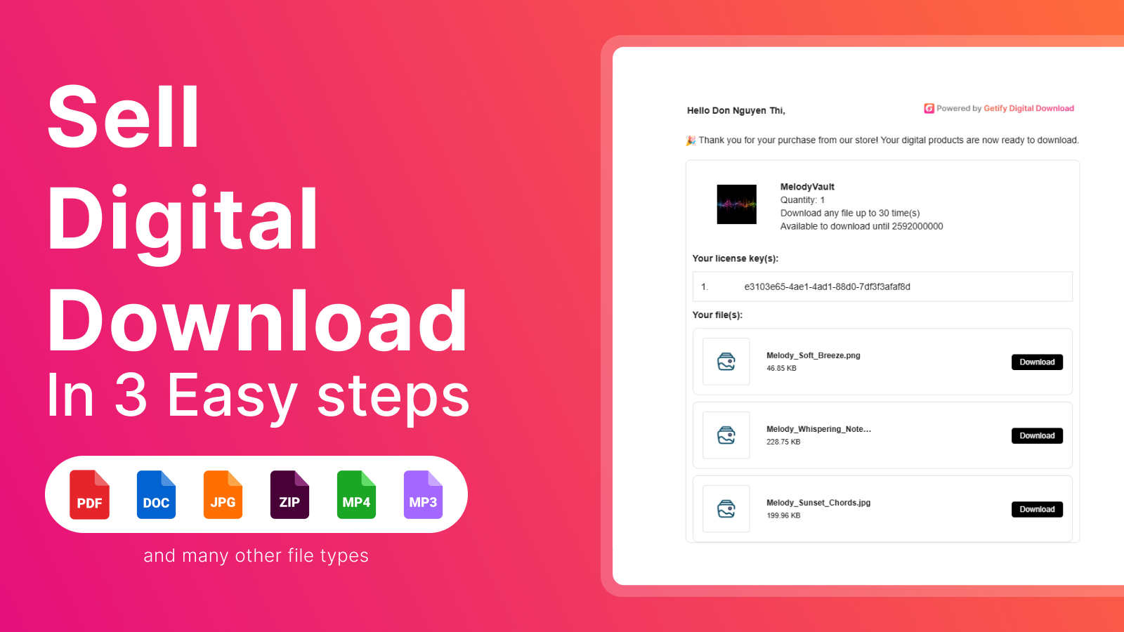 Sell and manage digital products, whether it's eBooks, music, videos, software, PDFs, or license keys. With automated file delivery and simple order tracking, you can focus on growing your business while we handle the rest.