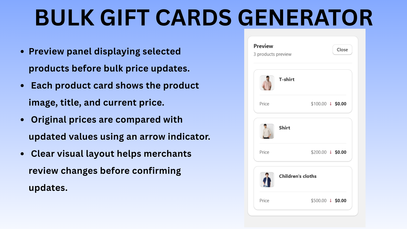 Professional bulk editor for prices, titles, status, and tags. Smart filters and instant previews.