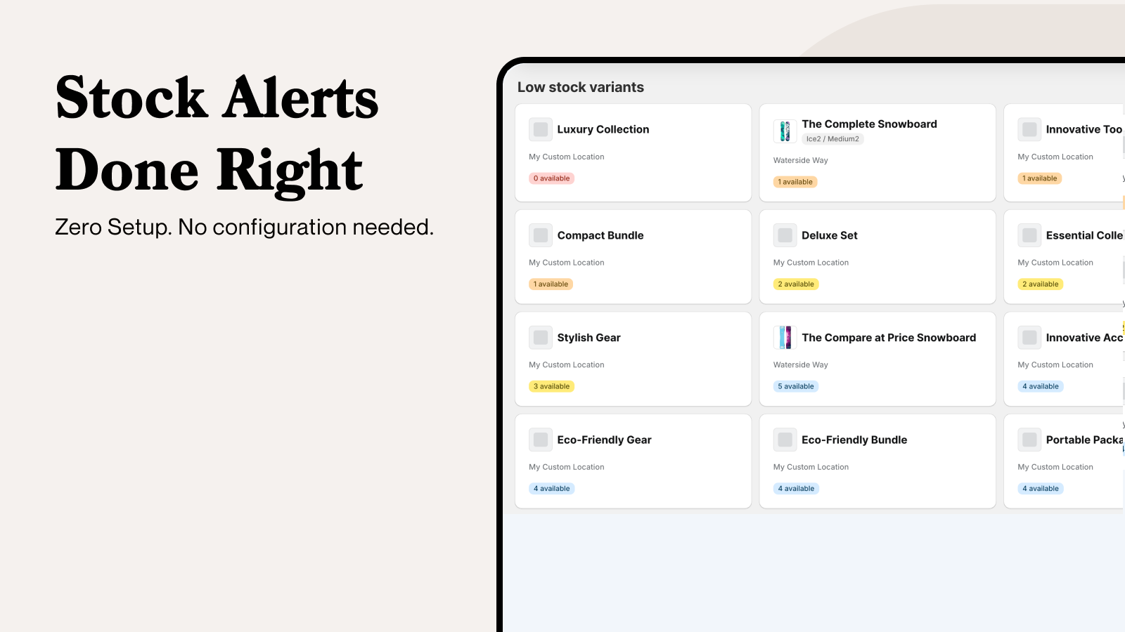 Get instant low-stock alerts and restock predictions. No setup, just smarter inventory management.