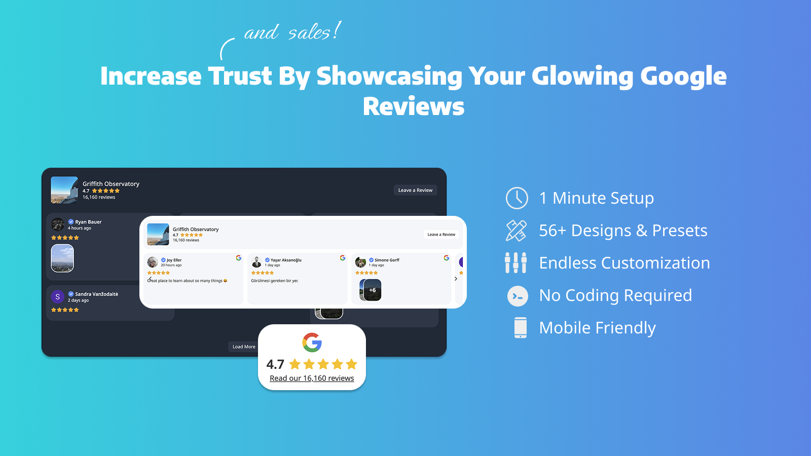 Showcase Your Google Business Reviews in Elegant Widgets to Build Trust and Drive Conversions.