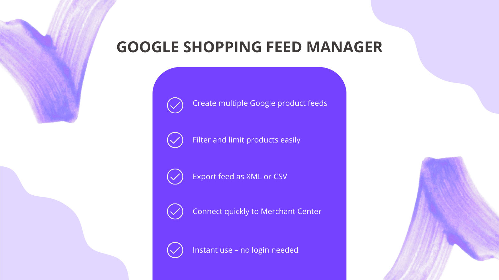 Google Shopping Feed Manager simplifies the task of listing Shopify products on Google Shopping by generating a structured XML feed. It ensures your product data meets Google Merchant Center standards, helping you avoid manual input, minimize errors, and reduce the chances of product disapproval.