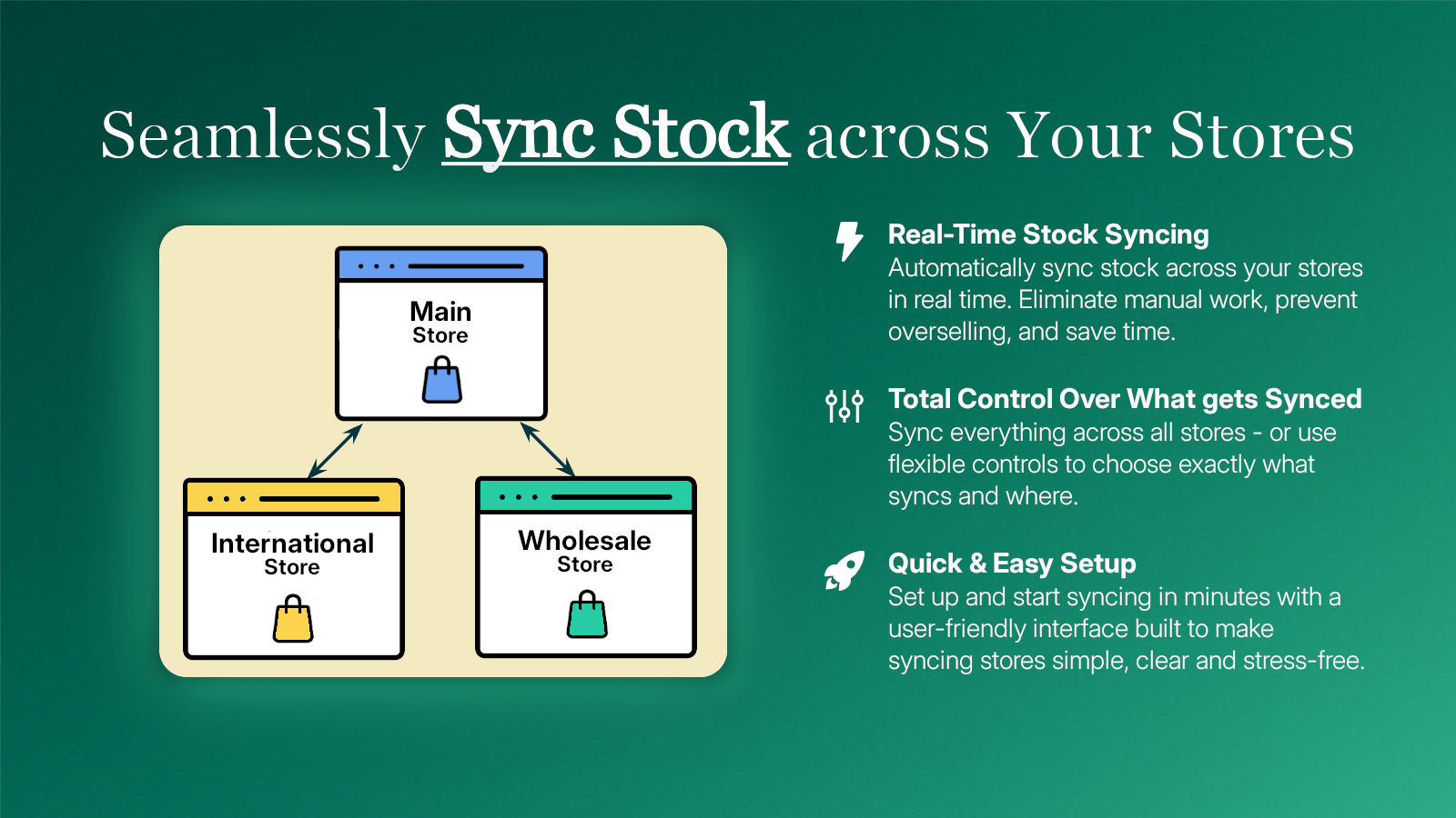 Automatically synchronize inventory across multiple stores.