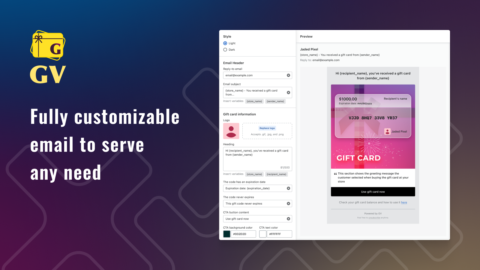 Send gift cards by email easily with the customization you need, the personalization customers want