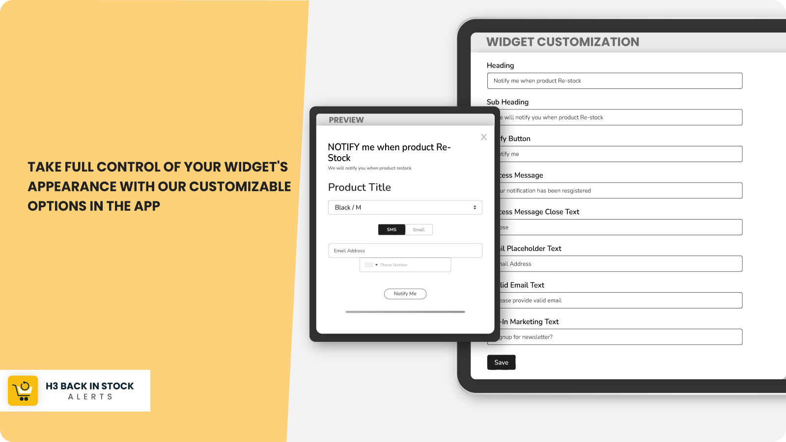 Notify customers via Email, SMS, or push notifications when desired products are back in stock.