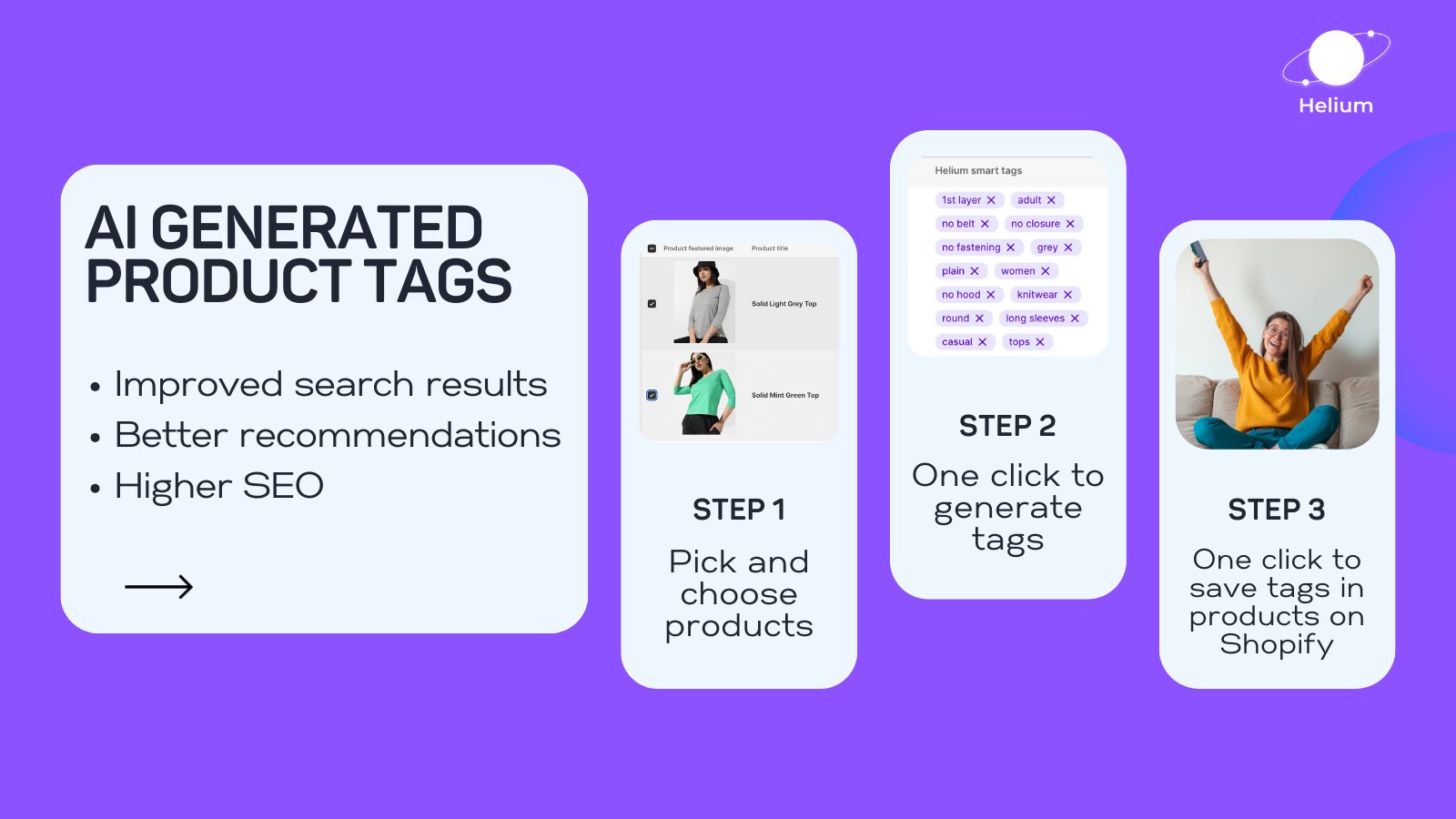 Instantly generate AI product tags, auto-suggest collections for top items & enhances SEO