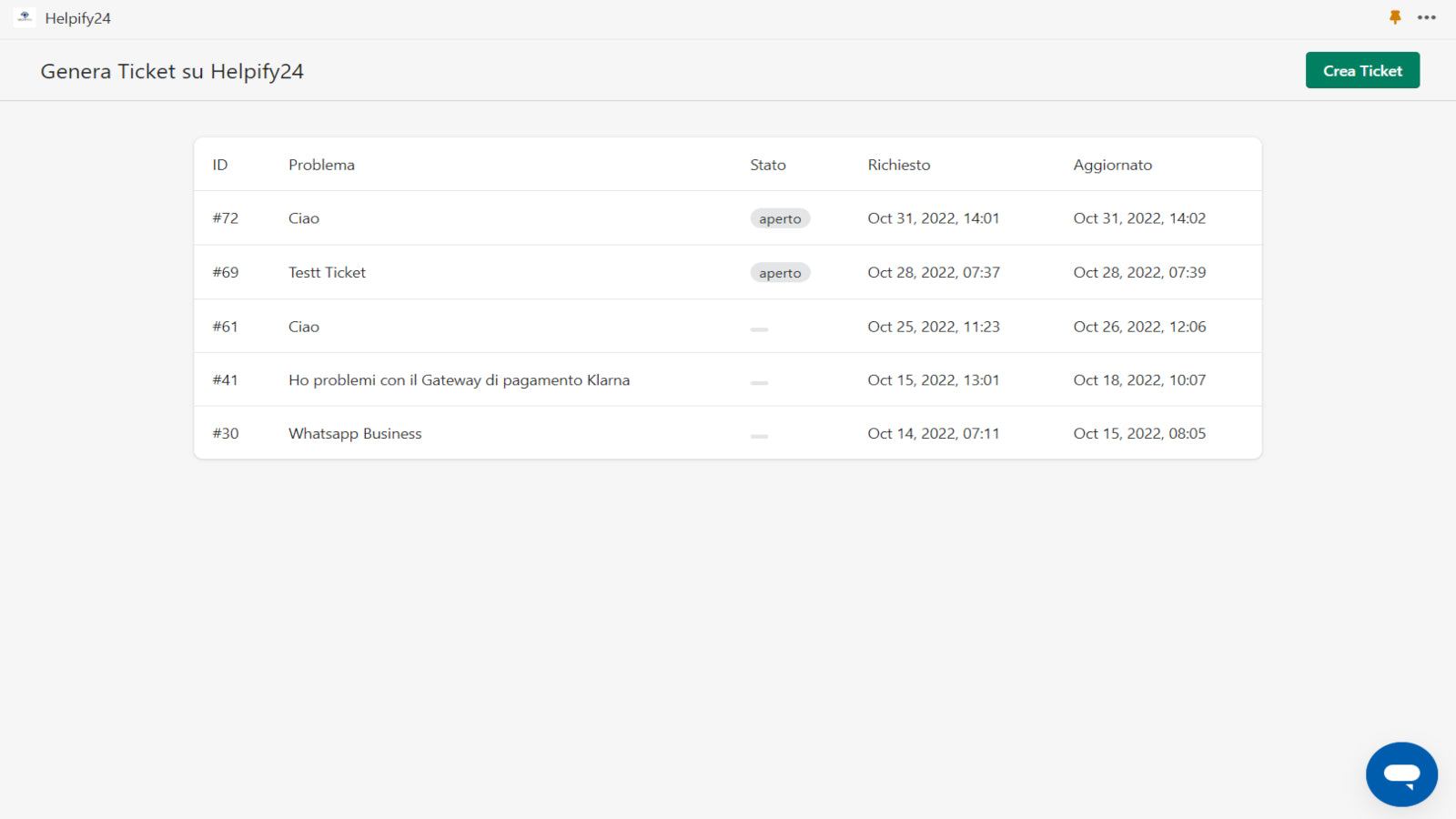 Ti forniremo un' aiuto concreto grazie ai nostri operatori online. Ti aiuteremo a risolvere i problemi che riscontri giornaliermente con il tuo ecommerce, semplicemente aprendo una richiesta su Helpify24. Se i nostri agenti saranno disponibili subito, risponderanno alle tue richieste tramite la Live Chat, oppure potrai aprire un Ticket. Il tuo Ticket riceverà risposta massimo entro 24 ore dalla richiesta. Non saremo solo la tua agenzia in cloud ma il tuo punto di riferimento.