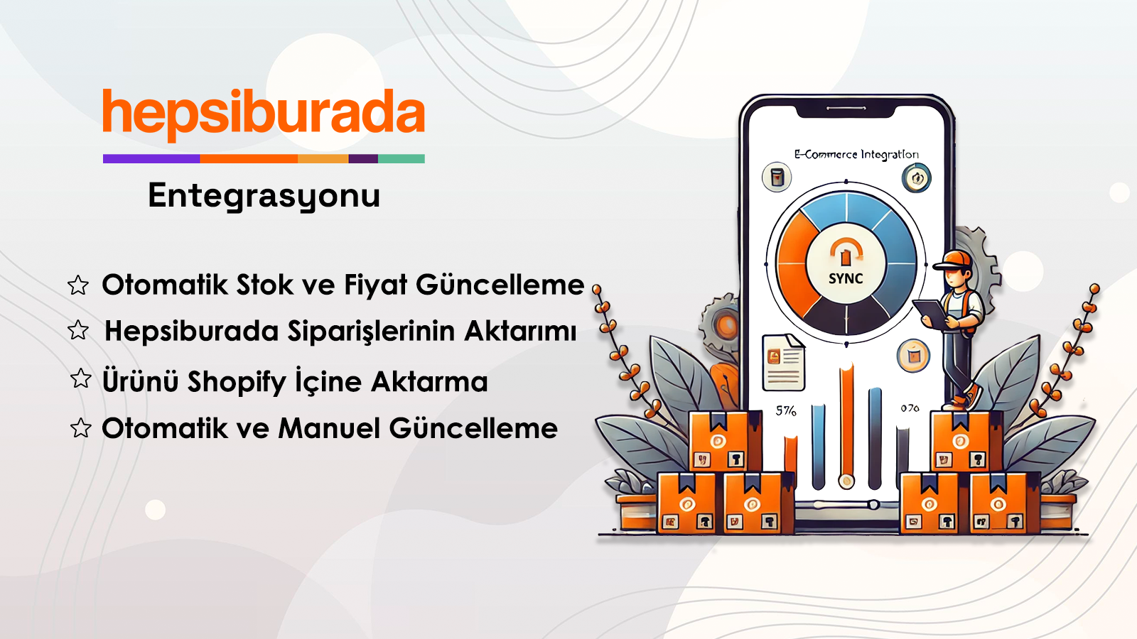 Hepsiburada ürünlerinin ve mağazanızdaki ürünlerin, Stok, Fiyat entegrasyonunu gerçekleştirir.