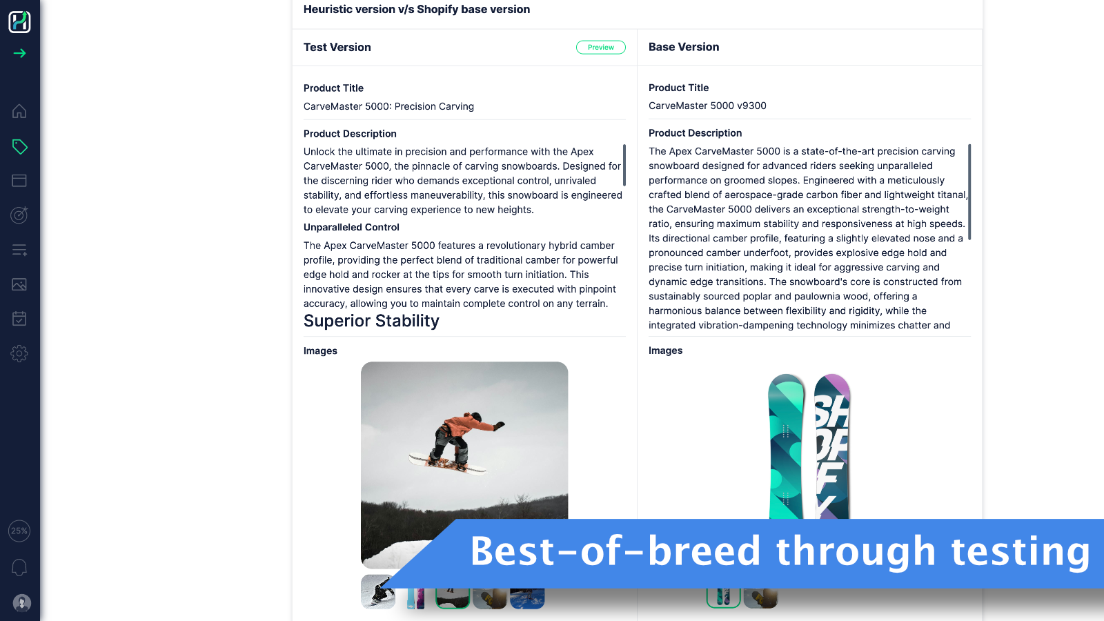 Looking good gets you seen, substance converts. Deliver impactful shopping experiences beyond button colors through testing, optimizing and personalizing your entire on-site shopping experience. Instead of a superficial approach of optimizing button colors or inserting banners and therefore delay meaningful impact for months, we focus on the content that drives shoppers to convert and the real money is made. Any where from the homepage to your product content, start converting more today!