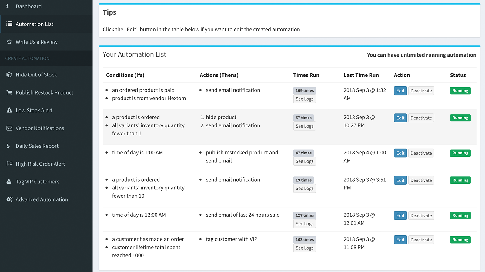Shop Workflow Automation is an e-commerce automation solution that takes daily operations off your shoulders, so you can concentrate on growing your business. The App provides curated library of templates that you can choose from and build automation right away. You can also build any custom automation in a few clicks. You can have trigger based automation such as fraud detection when a new order is created, and schedule based automation such as payment reminder to customers, etc.