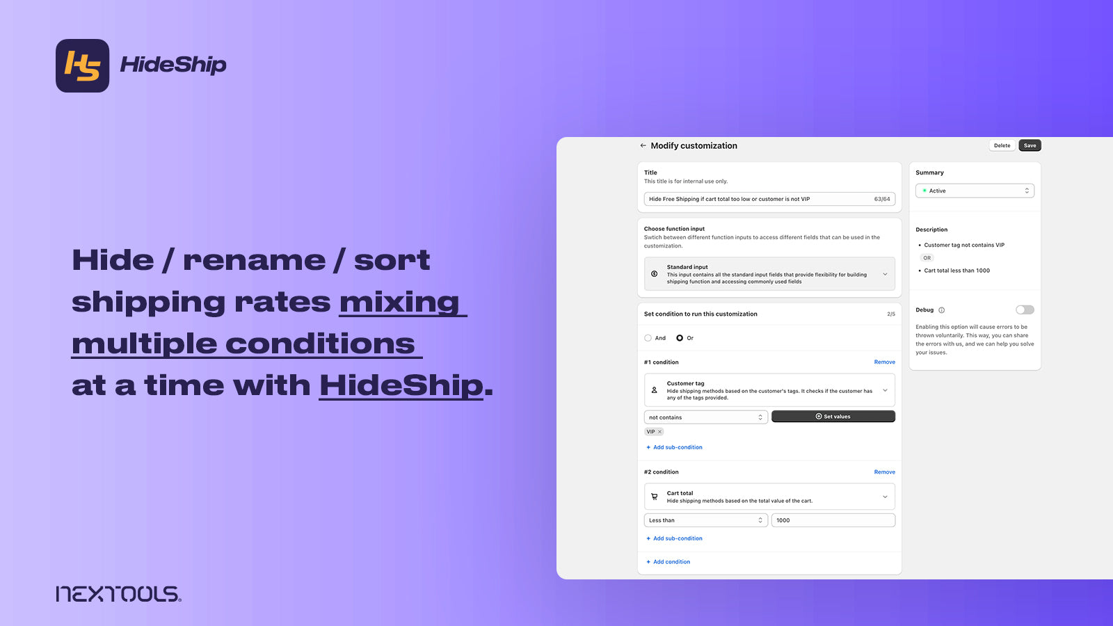 Goodbye to irrelevant shipping options with HideShip. Hide, Sort & Rename Shipping Methods Easier.
