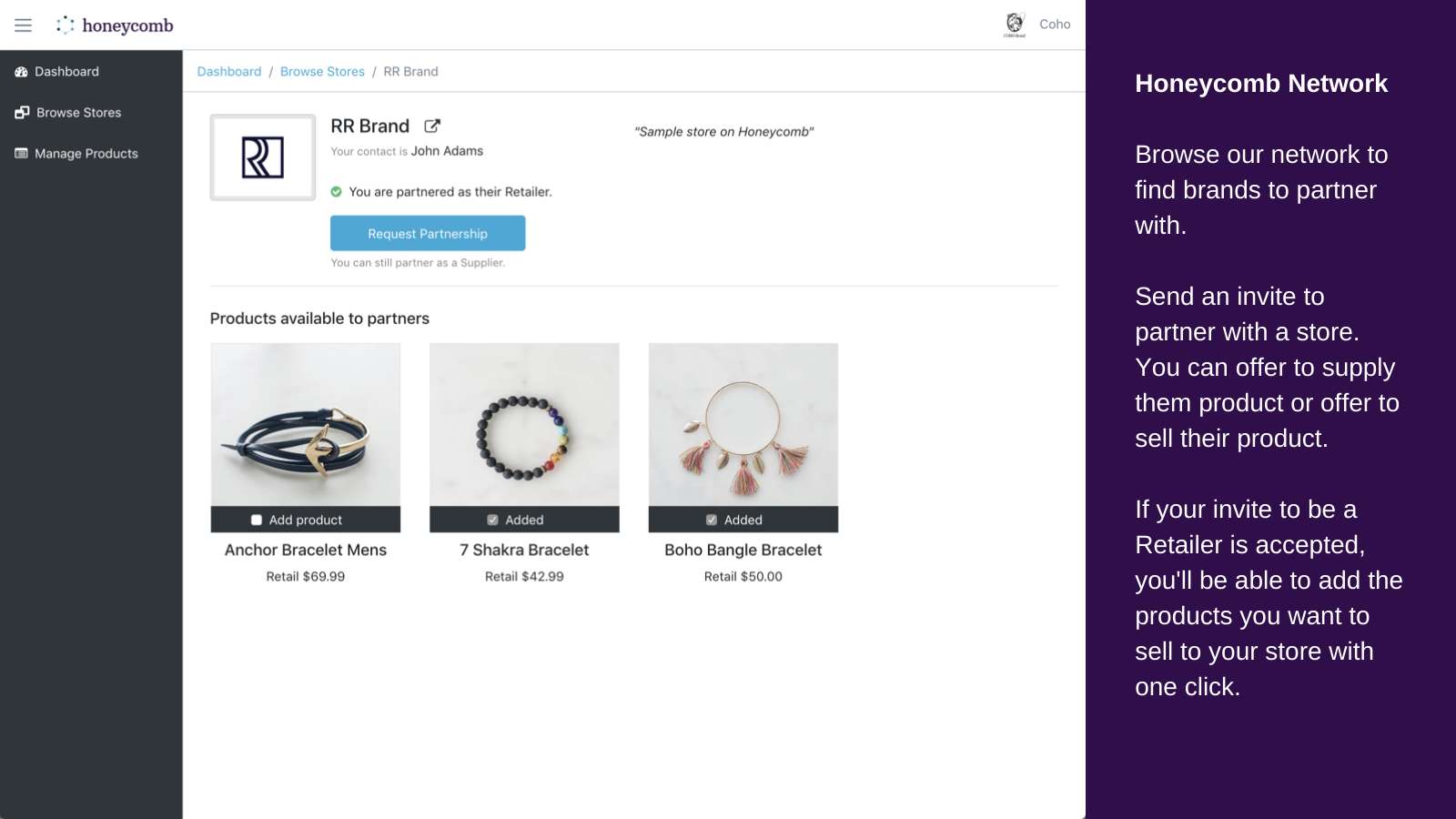 Partner with elevated brands Decide to sell products with no inventory commitments, provide inventory for leading stores to sell or do both! Sell and Fulfill with Ease We seamlessly sync products, inventory, orders, returns and payments between stores so you can focus on what you do best. Increase LTV and Lower CAC Use the network as a Supplier to acquire new customers at an efficient CAC. Use the network as a Retailer to increase your customer LTV.