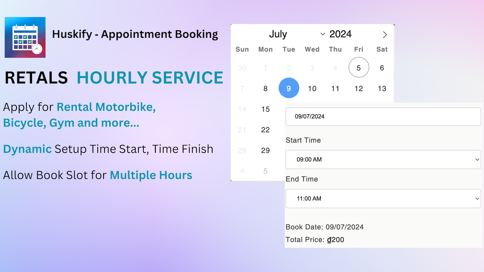 Huskify Appointment Booking app provide for you a good solution to selling services/products on Shopify. With the app, You can sell service by days, hours, and time slots. You can Dynamic settings service for everyday or each day, hours and time slots. App also provide Manage service orders and advance charts help you can Manage Rentals, Appointment and Revenues. You can start using app without any technical. For your customers, They can check and book your service by Book form and Calendars.