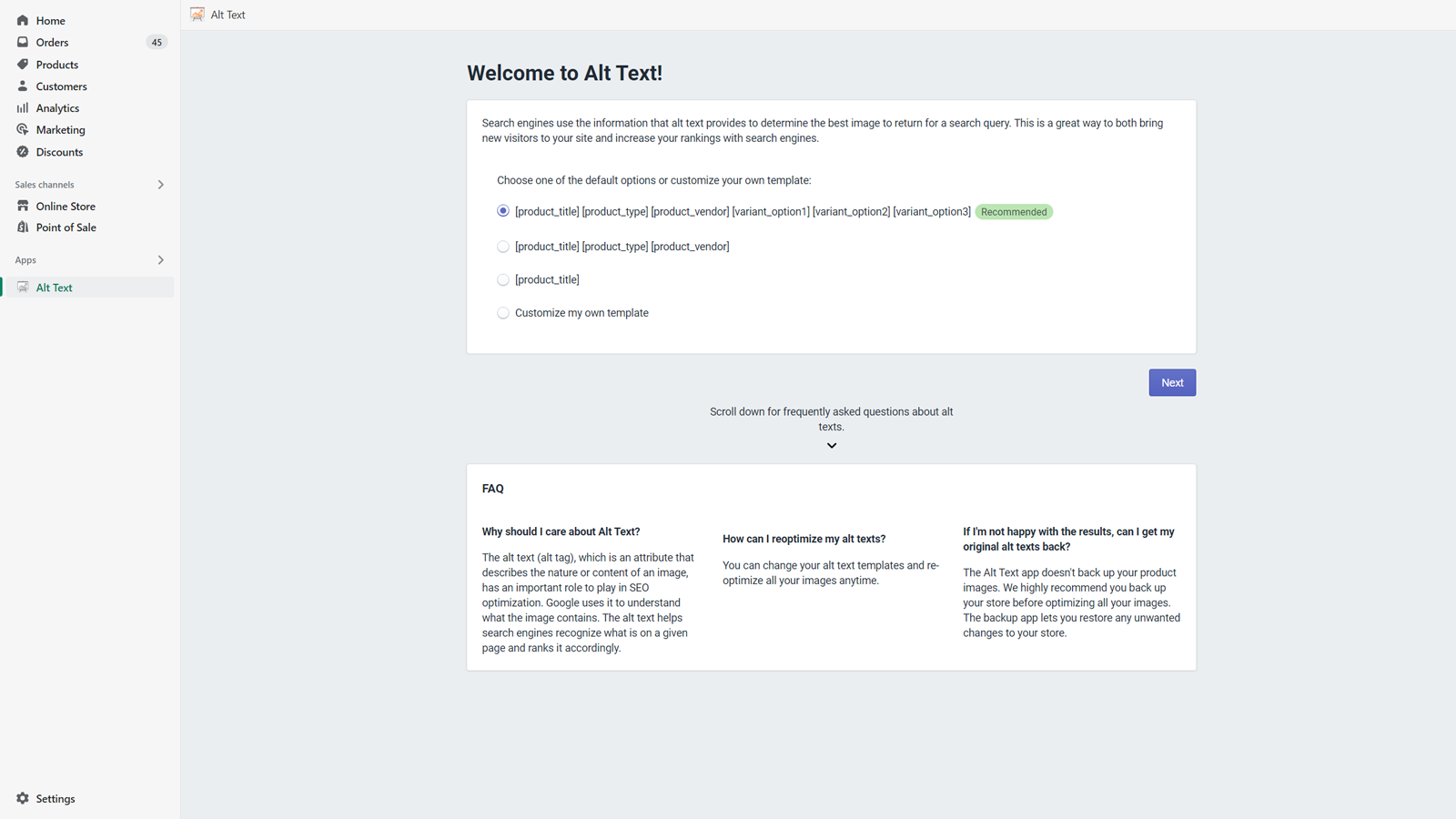 Optimize product image alt texts with ease
