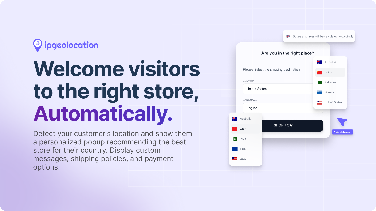 Guide international customers to localized storefronts automatically.