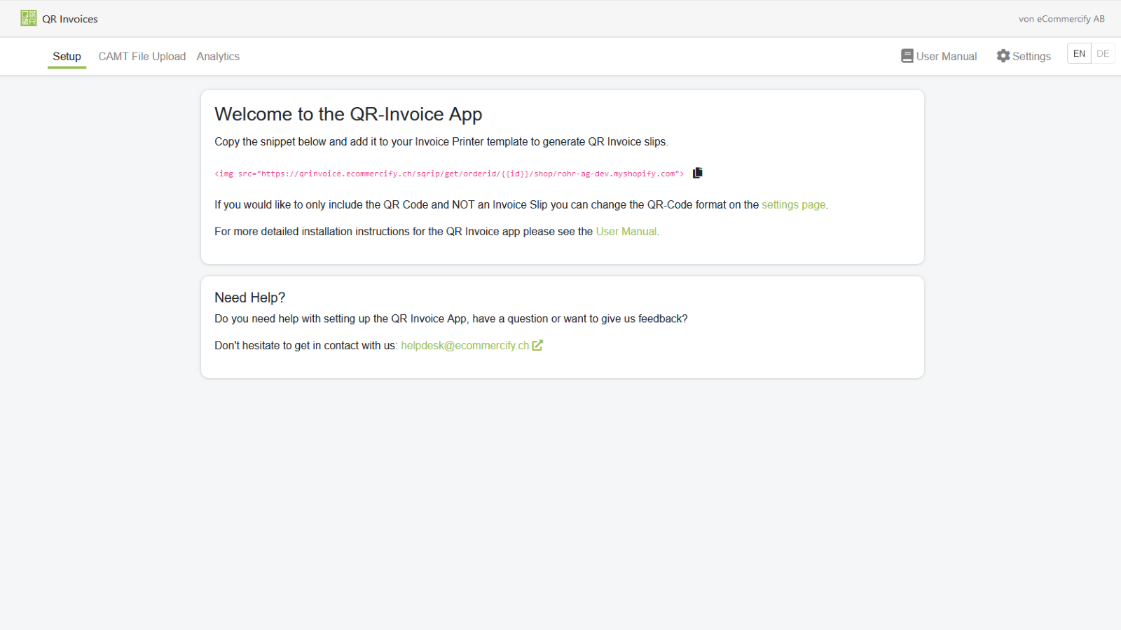 With the QR Code Invoice App you generate QR Codes which can be used as follows: * Standard invoice form for integration with Order Printer App (Shopify). * "Pure" QR Code image for integration with other invoice templates in Shopify. * Download QR Code for integration with other invoicing programs