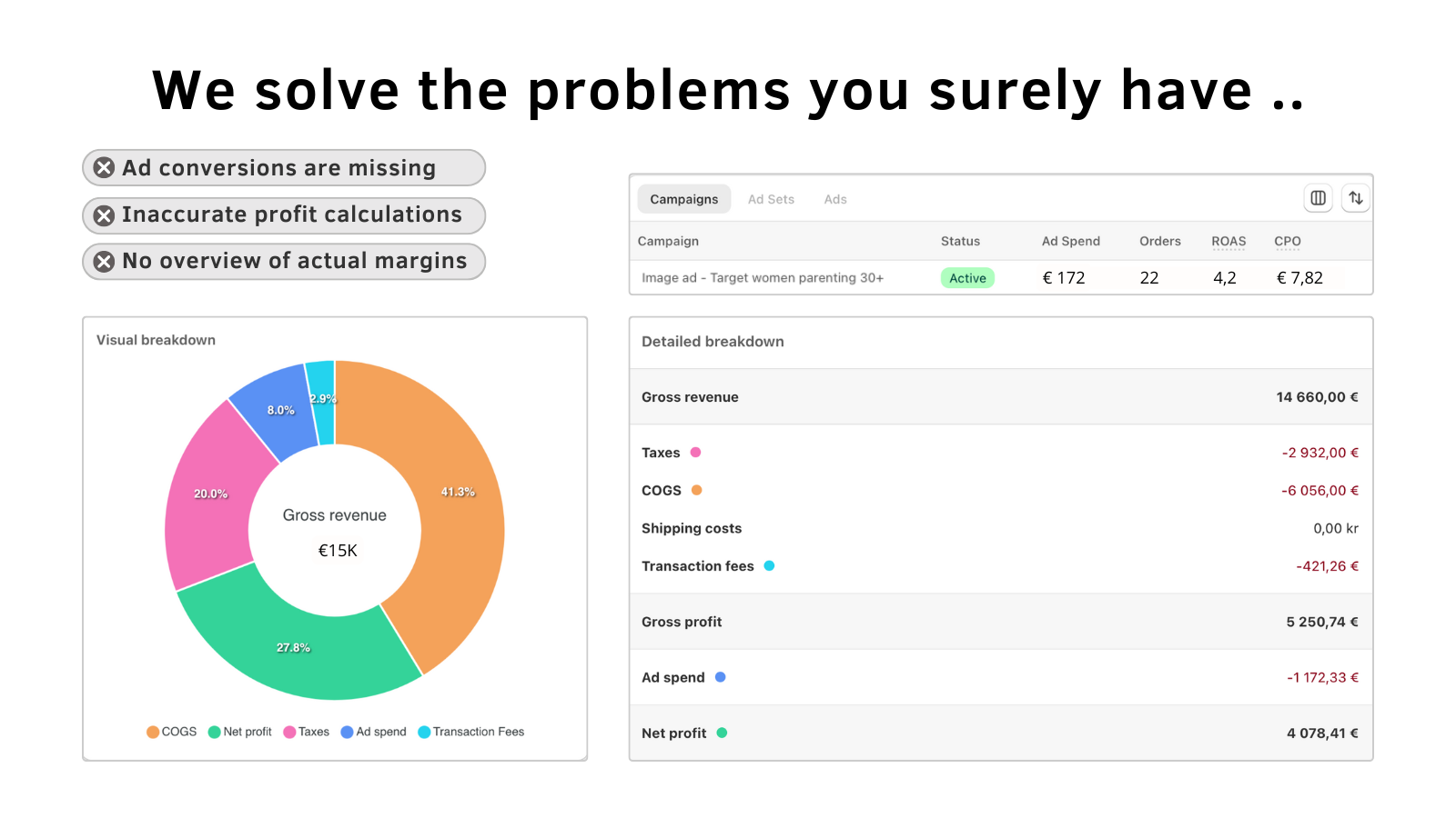 Track true profit per order and the exact ad that drove it – all in one simple, powerful dashboard.