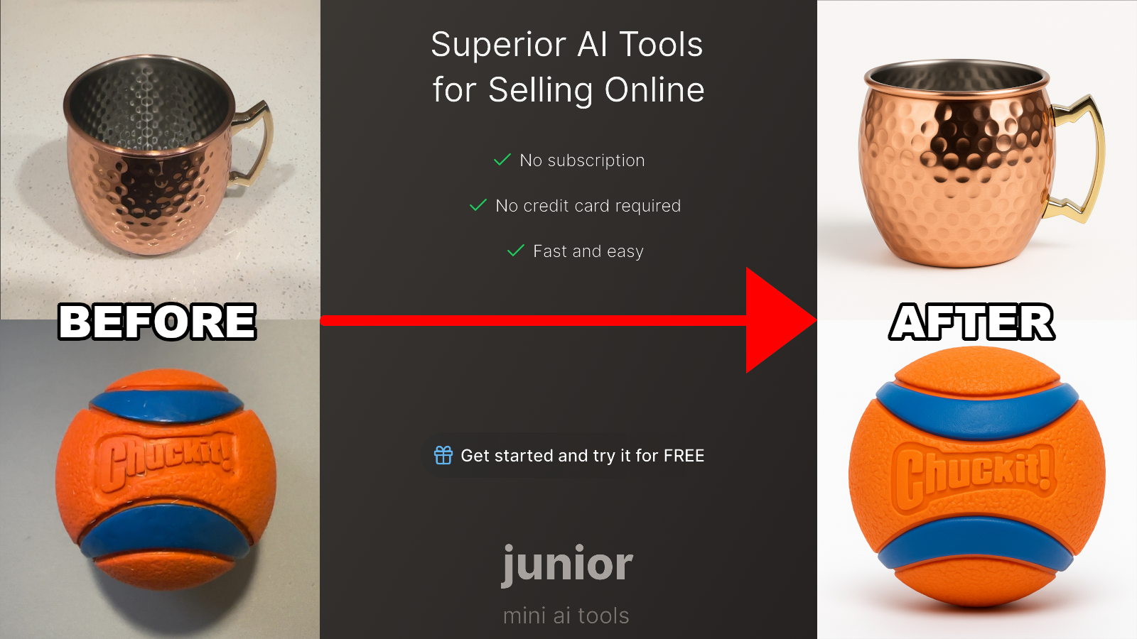 Create new and improved photos, compelling listings, and more generated with zero-prompt AI.