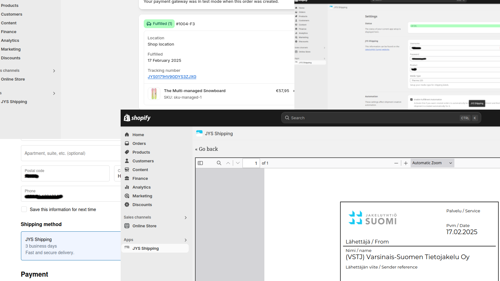 Automatically display shipping rate for Jakeluyhtiö Suomi if the customers address is supported. Automatically create shipping labels and get tracking link on your orders.