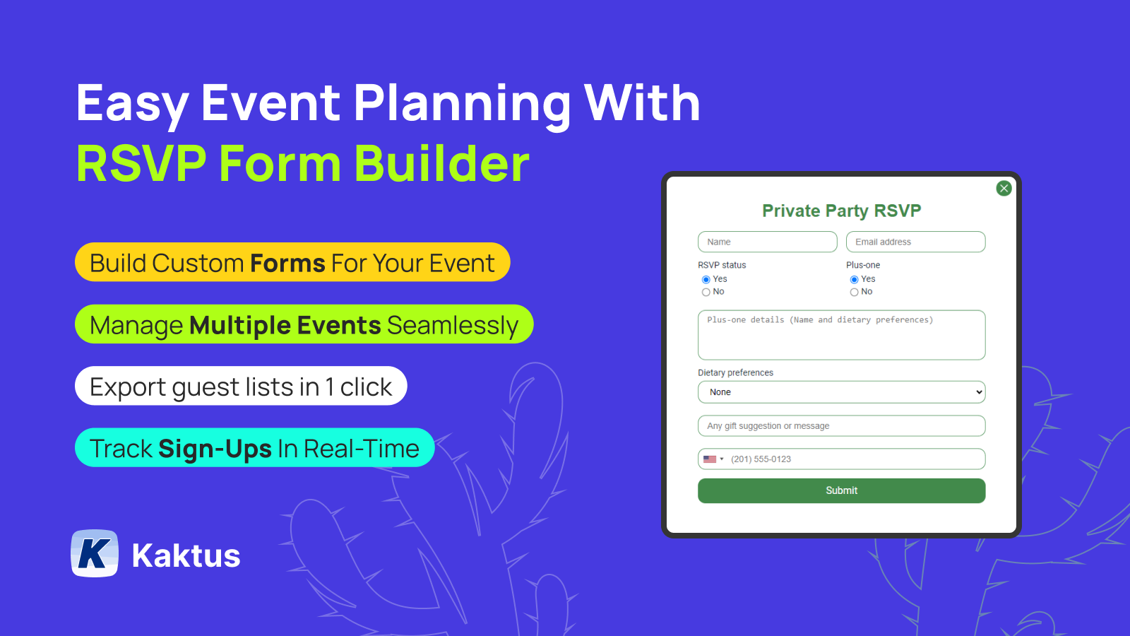 Effortlessly build custom RSVP forms and track responses with RSVP Form Builder.