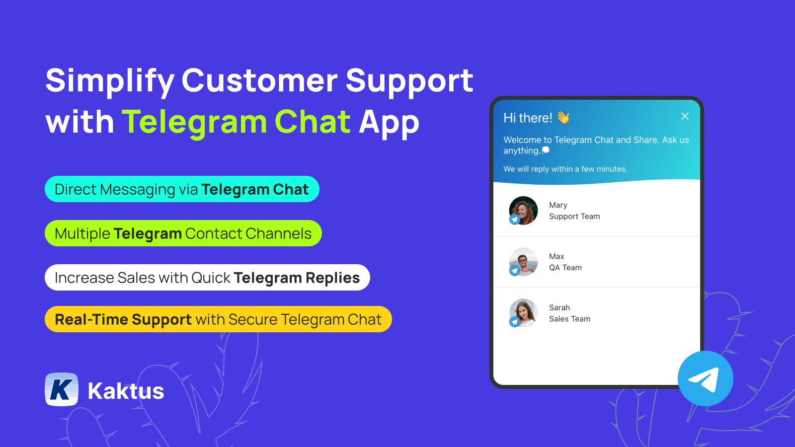 Stay connected with Telegram chat buttons and provide instant customer support via online chat.