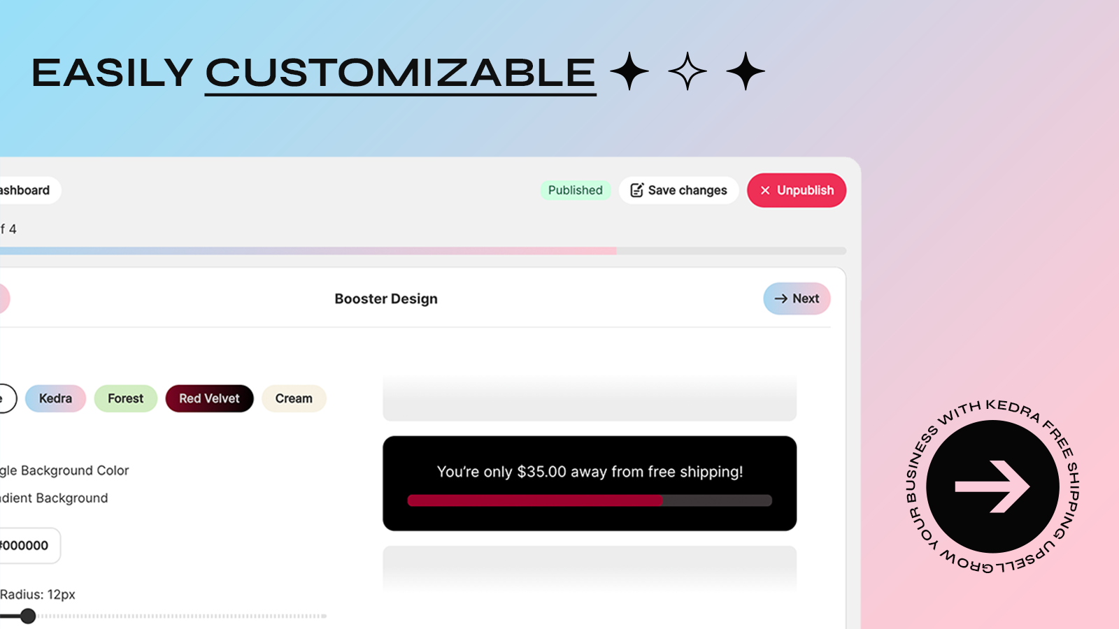 Boost Profits, AOV, and Sales with Kedra: Free Shipping Progress Bar, Cart Goal, and Upsell Products