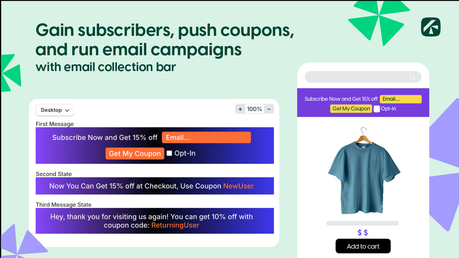 Kefi Bars helps your Shopify stores with easy-to-use customizable bars for Free Shipping, Announcements, Countdown Timers, and Email Collection. Designed to enhance customer engagement and drive conversions, each bar integrates seamlessly into your website with no coding required. Easily customize messaging and visuals to match your store's needs and multiple design templates, streamline your setup and Utilize advanced targeting to deliver the right offers to the right customers.