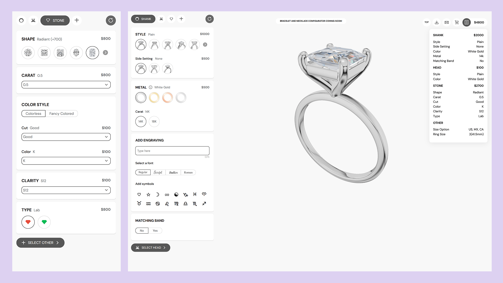 3D Jewelry Configurator for Rings - Bracelets and Necklaces Coming Soon