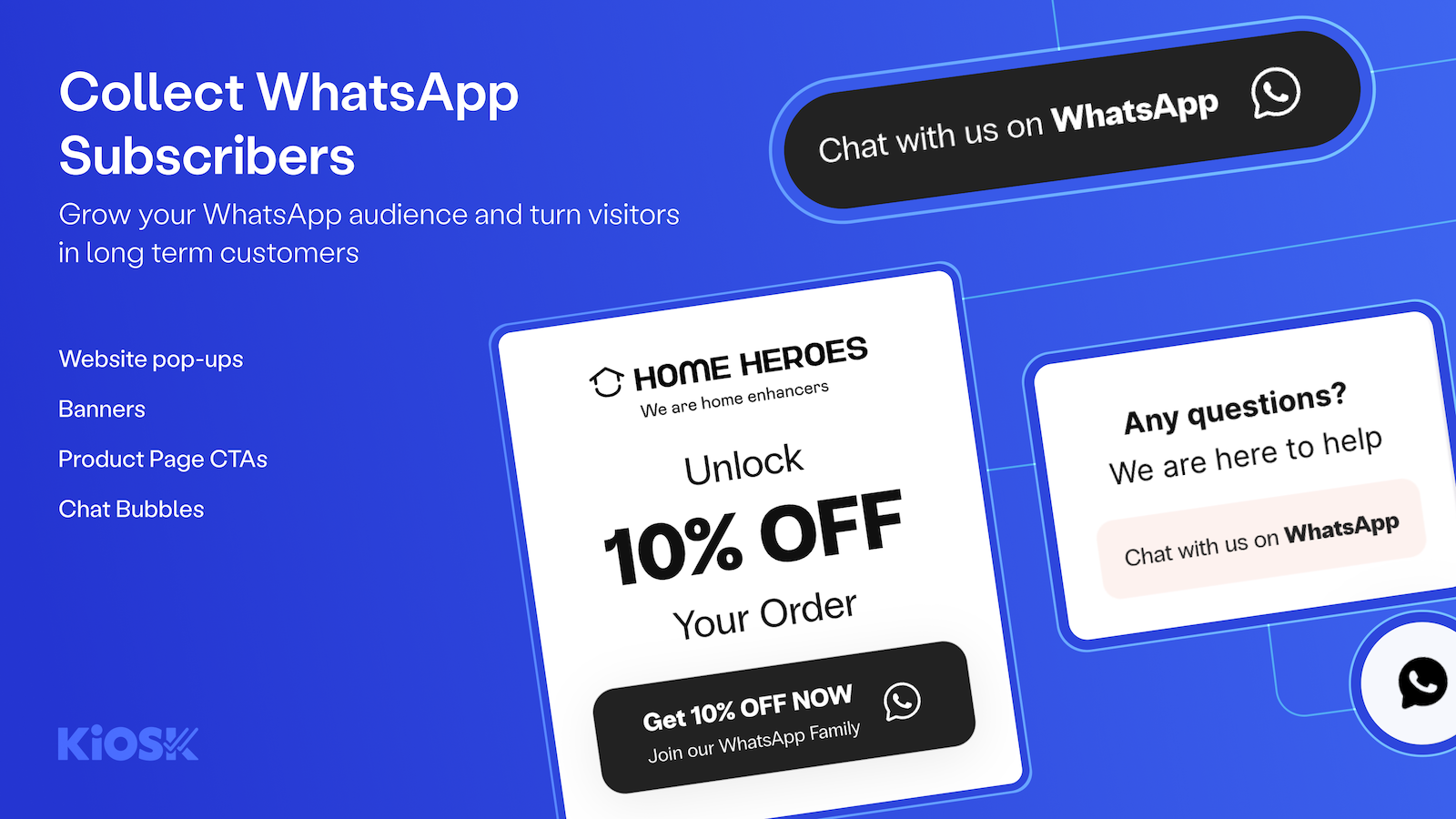 Kiosk is a European WhatsApp marketing platform. We allow brands to engage with customers on their preferred and most used channel, WhatsApp ! Use kiosk to create and manage your WhatsApp lists, create segments, and engage with them customers thought personalised campaigns and powerful and automations. For example, you can use Kiosk to recover abandoned carts, send back in stock alerts, newsletters and new collections.