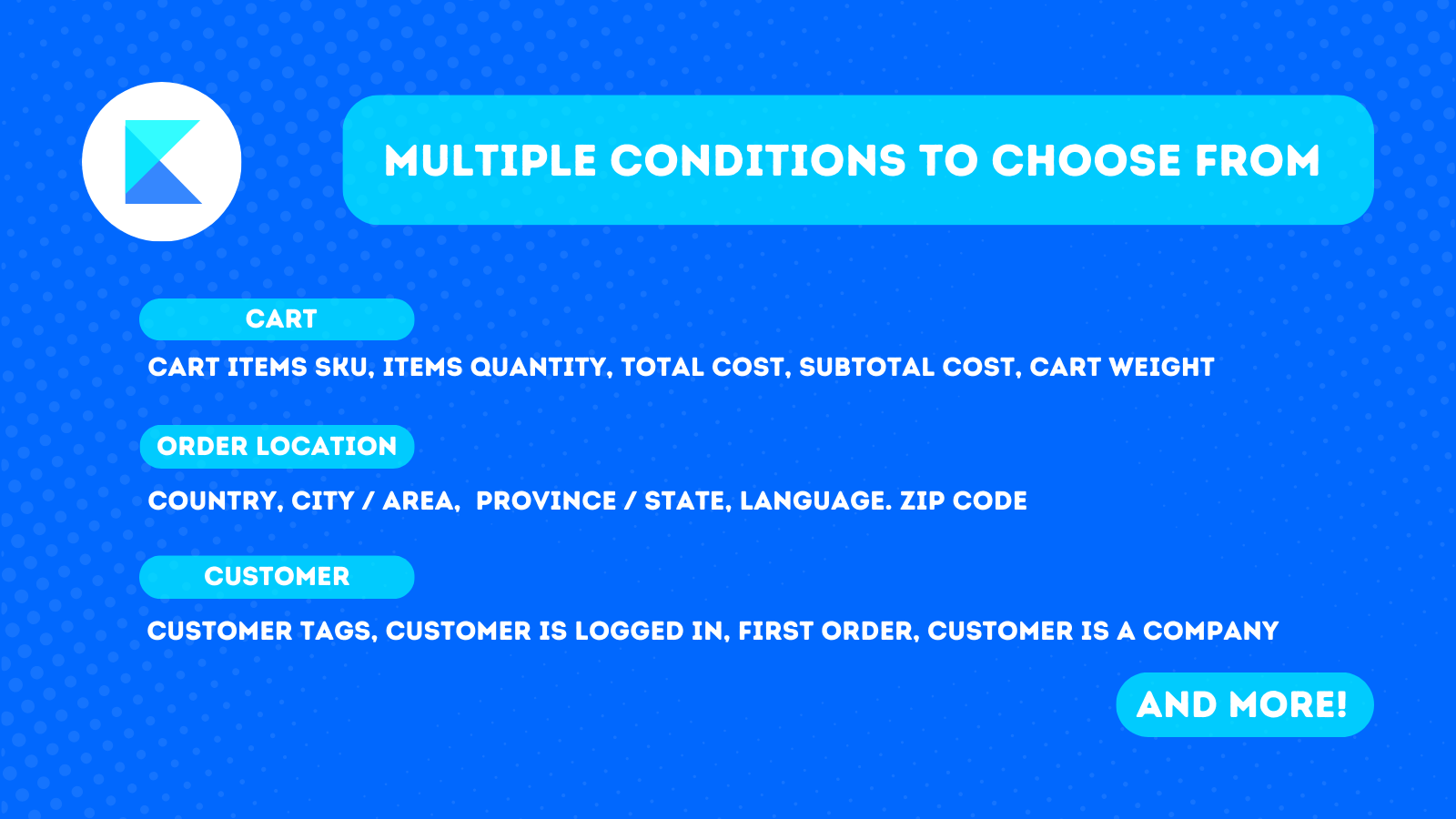 Customize the checkout experience of your customer to your needs! You can rename, reorder, or show/hide payment methods that you set based on conditions like customer country/location, selected shipping method, cart total, cart weight, specific items in the cart SKUs, customer tags, customer is a company, and more. Also, you can hide express checkout. Give priority to payment methods by moving them to the top so they are preferred by your customers, or block the checkout by hiding all methods.