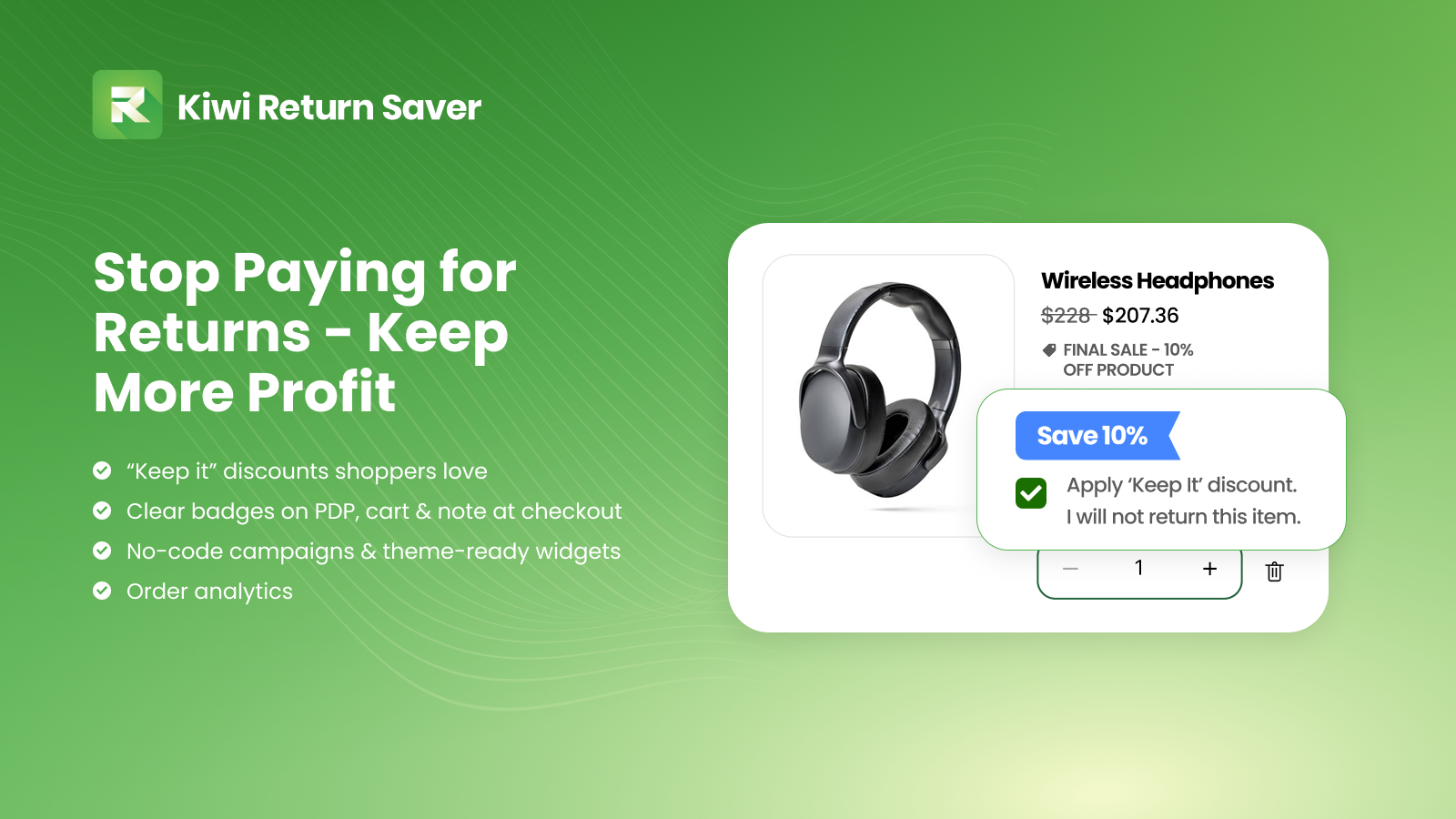 Enable no-return discounts for customers. Cut your return costs & protect profit margins.