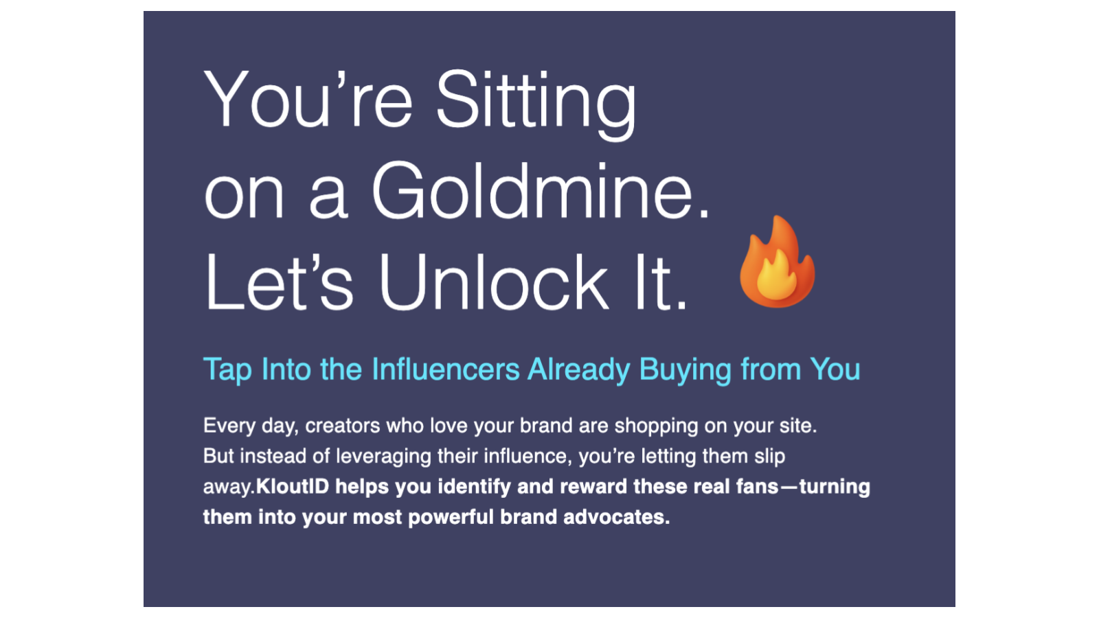 KloutID helps merchants discover creators who already shop with them and automatically provide personalized gated discounts. By connecting Shopify and TikTok accounts, KloutID verifies creator engagement and simplifies outreach—turning loyal customers into brand advocates, without relying on traditional influencer marketplaces.
