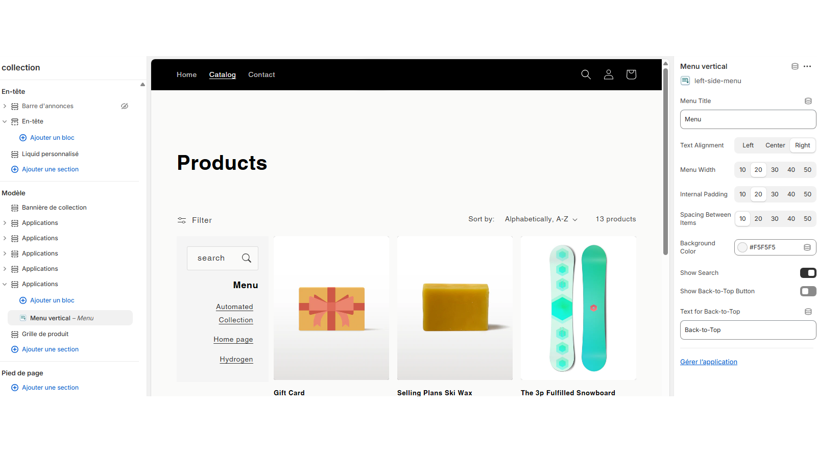 Add a clean left-side menu that displays your store’s collections for faster navigation.