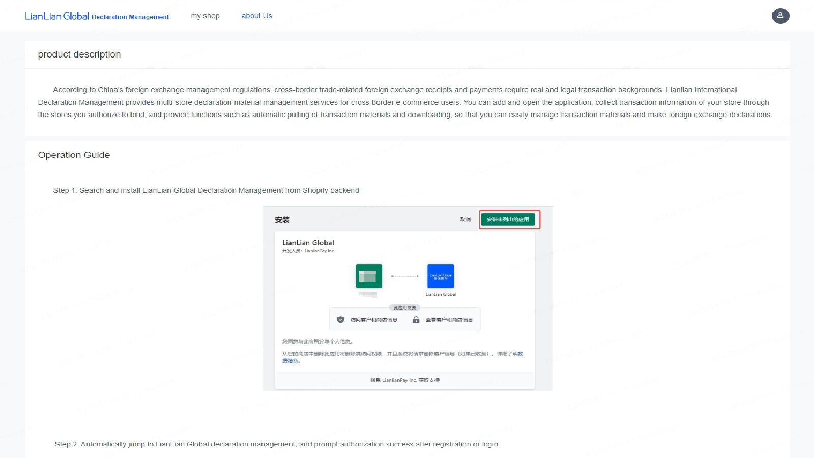 According to Chinese regulations, foreign exchange payments related to cross-border trade require a real and legal transaction background. Lianlian Global provides convenient and efficient multi-store declaration materials management services for cross-border e-commerce users. Multi-store authorization - install the application to review your shopify store list. Order management - review and export order details according to the order time you set.