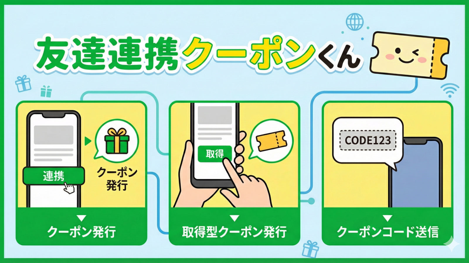 LINE友だち追加、取得型クーポンを簡単に配信できる、LINE連携アプリです。配布上限やリマインド配信まで自動化でき、販促運用の手間を大幅に減らします。