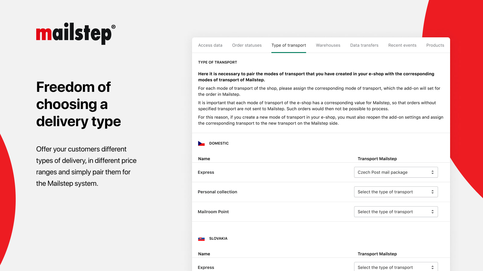 MailShip application helps you to connect to Mailship Fulfillment (provided by Mailstep), enabling you to ship your products worldwide from our distribution centers in Czechia, Italy and Greece.