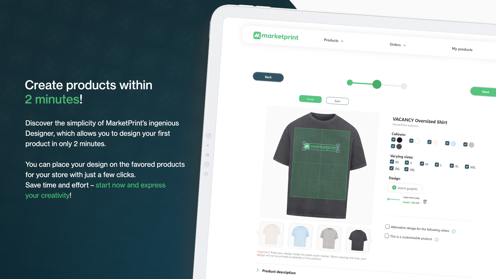 You want to start your own print-on-demand dropshipping business and are still looking for a reliable printing partner from Germany with Europe-wide shipping? Welcome to MarketPrint! We support you step by step and take the hassle out of the process. Build your fashion brand from the comfort of your own home. While you focus on marketing your brand, we take care of the fulfilment process, from production to shipping.