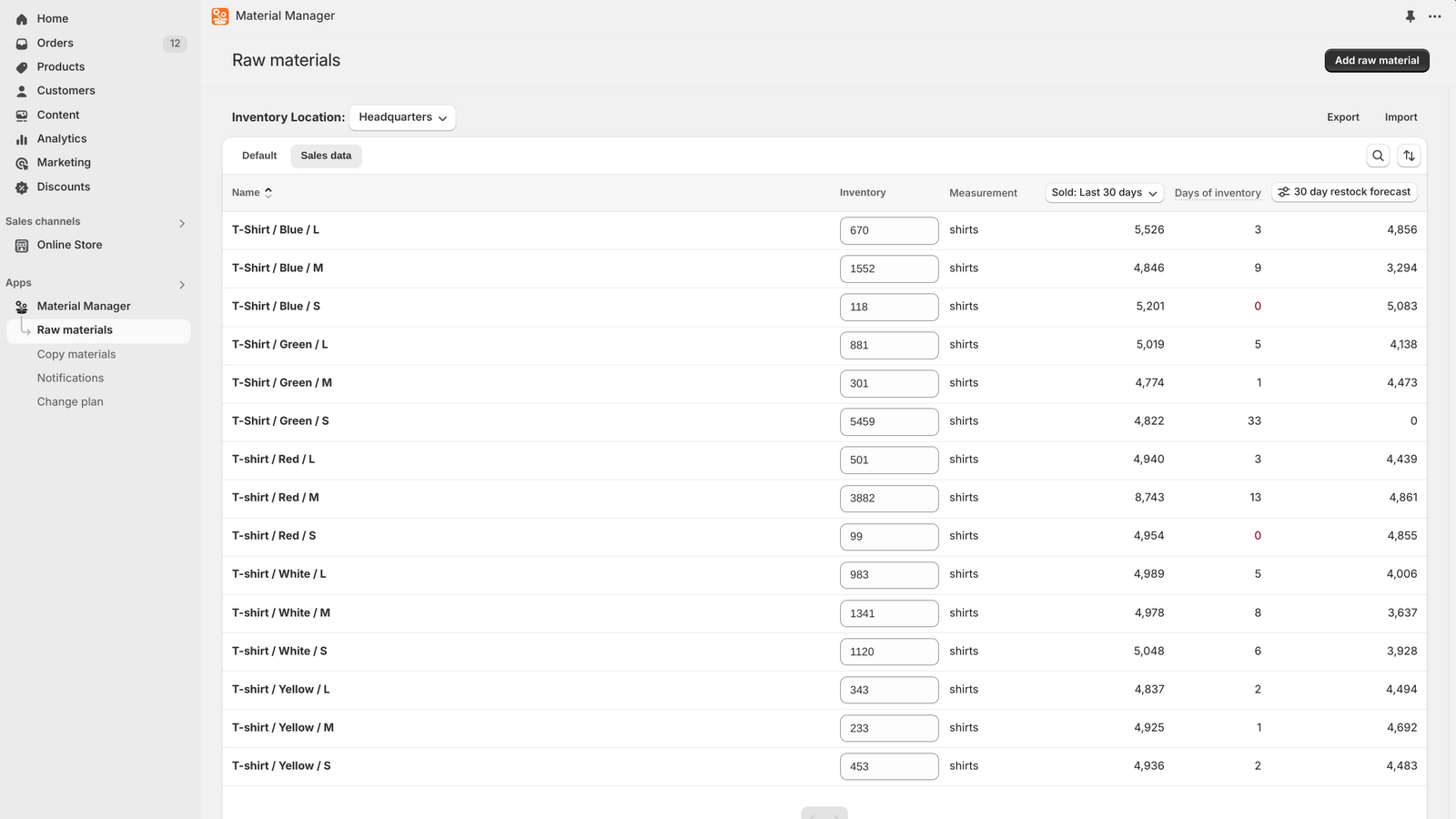 Material Manager seamlessly synchronizes raw material and product inventory. As soon as a product using a raw material is sold all other products using that material have their inventory updated. Ideal for businesses that manufacture products bespoke or on-demand. Automate tracking, optimize production, and reduce stock issues. Simplify your workflow and stop overselling with Material Manager.