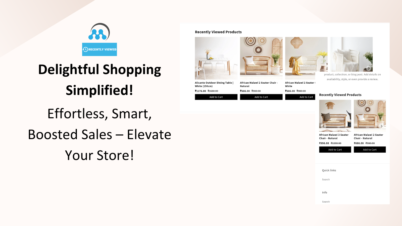 MeroxIO Recently Viewed Products seamlessly integrates into your Shopify store, offering a dynamic display of products recently browsed by your customers. Designed to enhance user experience without compromising site speed, our app includes a quick add-to-cart button for effortless purchasing. With MeroxIO, elevate your store’s appeal and functionality, encouraging more sales through smart, personalized recommendations.