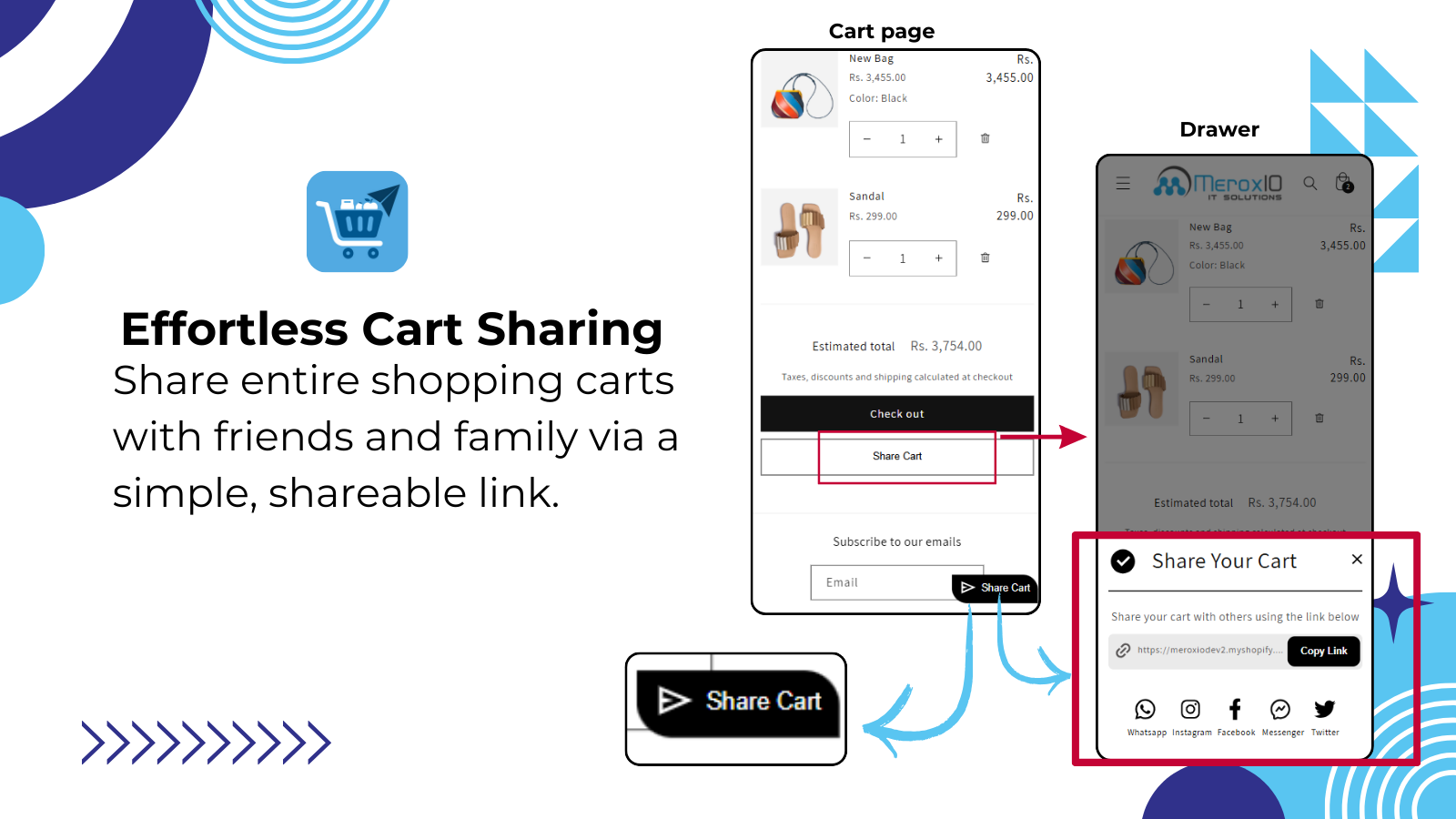 Share Cart lets customers share their cart with a unique link, making collaborative shopping easy.