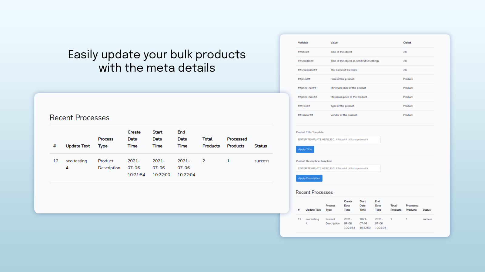 We understand that maintaining an eCommerce store takes a lot of effort and is time-consuming. With our bulk editor app, you can update the meta details easily for all products. Using our app, you can save time and focus on the other aspects of your online store.
