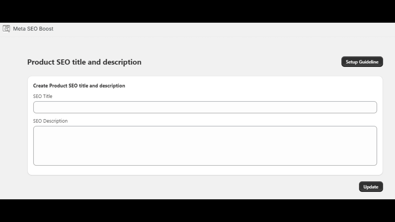 The core feature of the app is its ability to update the SEO title and description for all your products with just a single click. This means you can easily apply SEO best practices across your entire product catalog in moments. Simply fill out the form with the new SEO data, hit submit, and let the app handle the rest. It’s perfect for store owners looking to save time and maintain consistency in their product listings.