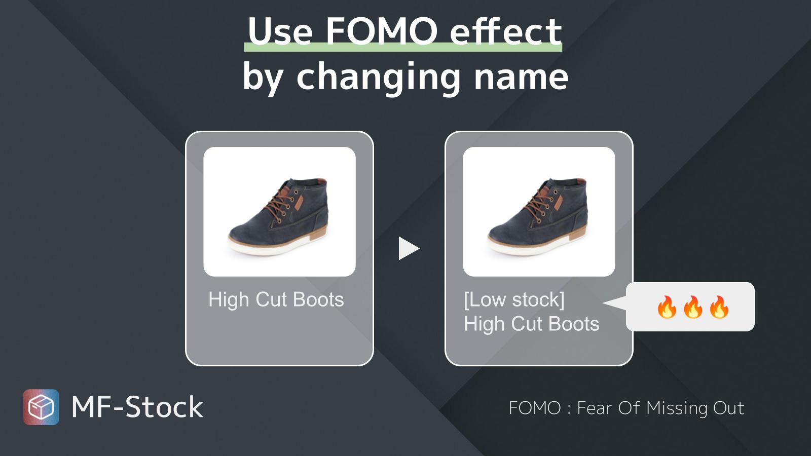 MF-Stock automatically adjusts the title, tags, and visibility of products based on their stock levels, helping to make sales. By notifying customers when a product has low stock, it can stimulate a fear of missing out (FOMO). Products that are out of stock can be hidden or set to draft to exposure for other products. Alternatively, showing that they are available for pre-order can prevent disappointing experiences for customers who visit the product page.